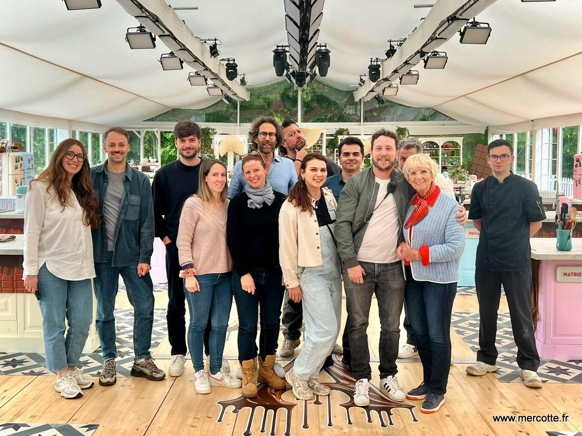 Notre joyeuse bande : pâtissière, producteurs, régie, techniciens, stagiaires, journalistes, coiffeuse, rédactrice en chef et j’en passe