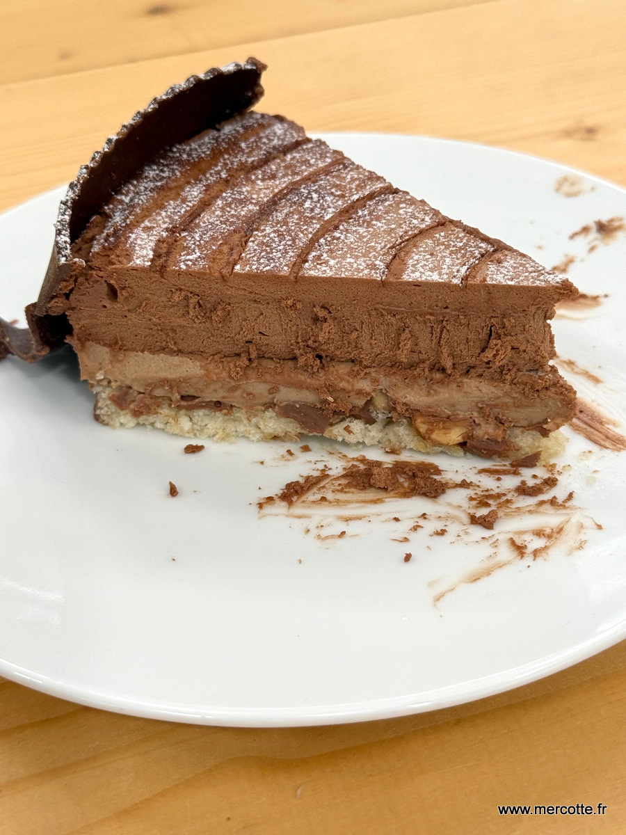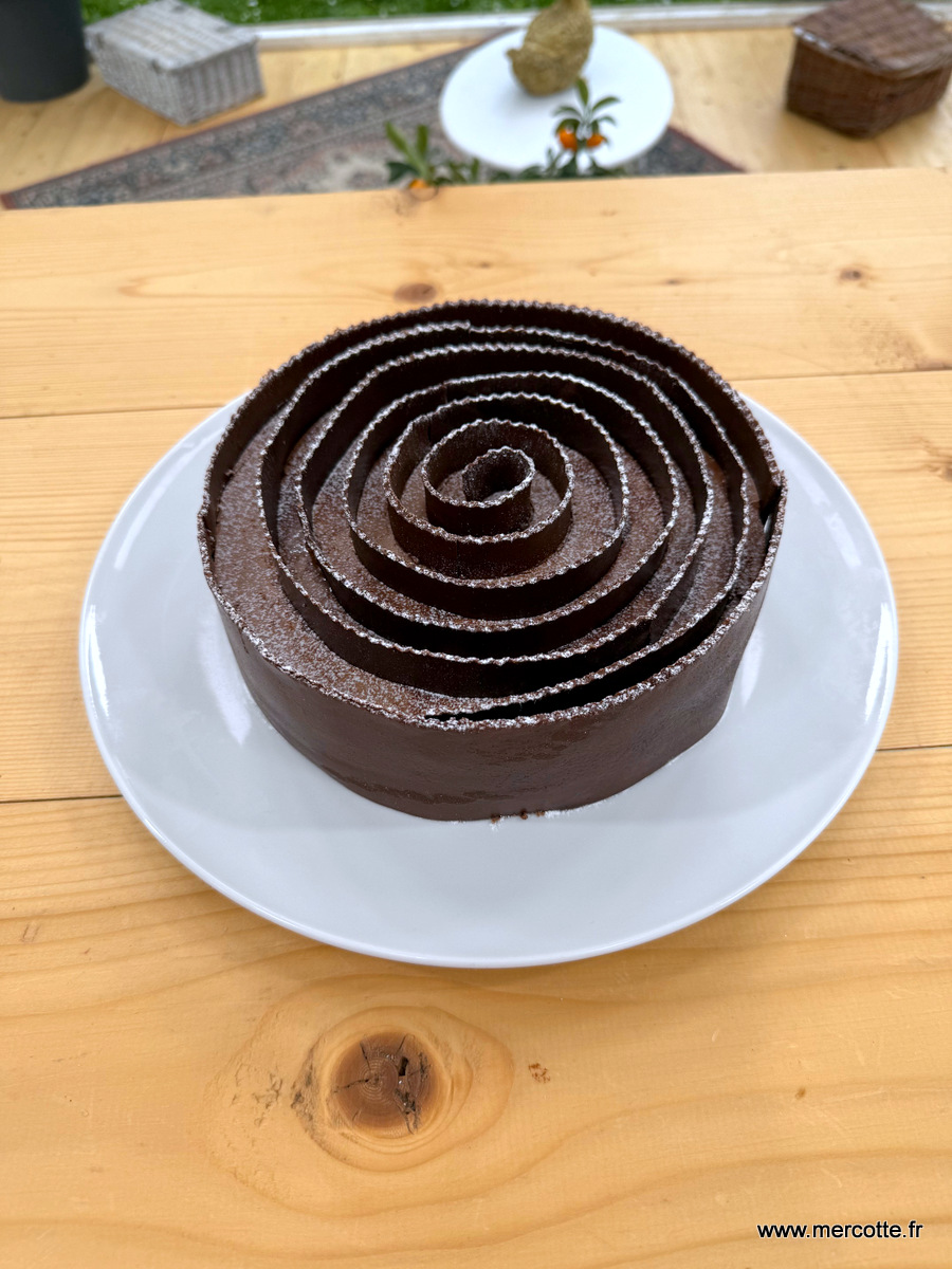 Aujourd’hui, place à la star incontestée de nos cuisines : le chocolat ! C’est l’ingrédient principal de l’entremets que vous allez réaliser. Pour réussir à le dompter, il faudra être précis, rigoureux et… un brin gourmand. Je vous invite à confectionner un Fédora, un délicieux gâteau conçu pour rendre hommage à l’élégance et à l’excellence de la pâtisserie française, rien que ça ! Alors, lisez bien la recette et rendez fiers tous les amateurs de chocolat de France ! Commencez par préparer le chocolat plastique, il doit impérativement reposer avant de pouvoir être utilisé pour fabriquer le décor tourbillon, pièce maîtresse, qui trône sur le dessus de votre entremets ! Pour cela, faites fondre 250 g de chocolat noir au bain-marie à 50 °C. Chauffez 200 g de glucose à 40 °C, puis mélangez-les jusqu’à obtention d’une pâte homogène d’une belle couleur marron foncé. Étalez votre pâte entre 2 feuilles de papier guitare. Réalisez la base de votre gâteau : un biscuit succès aux noisettes entières chablonné au chocolat au lait de 20 cm de diamètre avec des blancs d’œufs, du sucre, de la poudre de noisettes, du sucre glace et de la farine. Il doit être légèrement doré, moelleux à cœur, croustillant en surface. Ensuite, préparez et versez dans le cercle de 20 cm muni d’un rhodoïd de 5,5 cm un crémeux au chocolat au lait bien lisse et soyeux sur le biscuit succès avec 85 g de lait entier, 85g de crème liquide, 2 jaunes d’œufs, 30 g de sucre, de la gélatine et du chocolat au lait. Puis, réalisez et déposez sur le crémeux au chocolat au lait une mousse au chocolat noir au ras bord de votre cercle avec 450 g de crème liquide, de la gélatine, du chocolat noir et de la pâte de cacao. Vous devez obtenir une texture bien mousseuse et un goût intense en cacao ! A la découpe, un joli dégradé de couleurs allant du marron clair au marron foncé apparaîtra. Reprenez votre chocolat plastique. Étalez-le finement, à 2 mm d’épaisseur, entre deux tapis de cuisson en silicone. Détaillez dans cette pâte de chocolat plastique 6 bandes dentelées de 30 cm x 2 cm et 2 bandes de 32,5 cm x 5,5 cm. Démoulez le gâteau et terminez par la décoration : un tourbillon parfaitement régulier contenant 6 cercles en chocolat plastique qui tiennent à la verticale. Sur le gâteau, déposez les 6 bandes de chocolat plastique de 2 cm et soudez-les les unes aux autres pour former un grand tourbillon élégant et continu. Joignez les 2 bandes de 32,5 cm x 5,5 cm pour masquer élégamment le pourtour de l’entremets et coupez l’excédent. Saupoudrez de sucre glace et vous avez devant vous une sublime création joliment décorée et qui, je l’espère pour vous, enverra du cacao à la dégustation ! PS : Si vous êtes perdus à un moment, pas de panique… gardez votre sang-froid et rappelez-vous : dans la vie, comme en pâtisserie, faut pas craquer… sauf si c’est une pour une bonne tablette de chocolat !