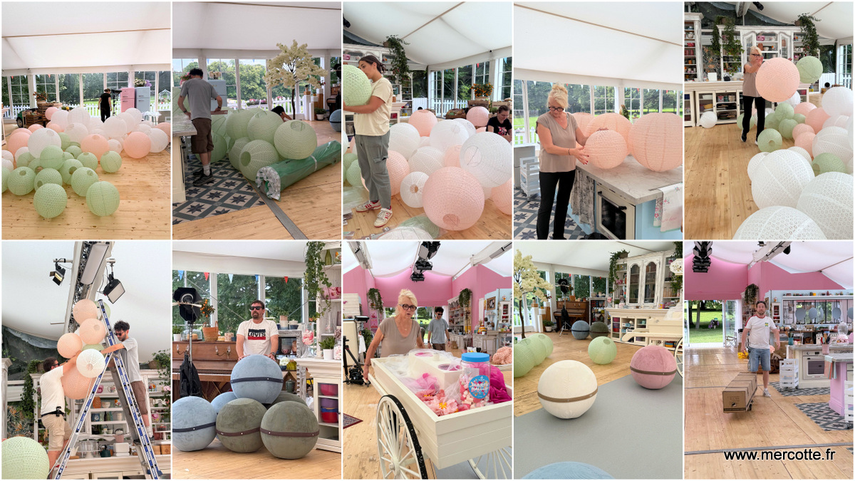 Hélène Navarro et ses équipes s’affairent sous la tente pour réaliser un superbe décor