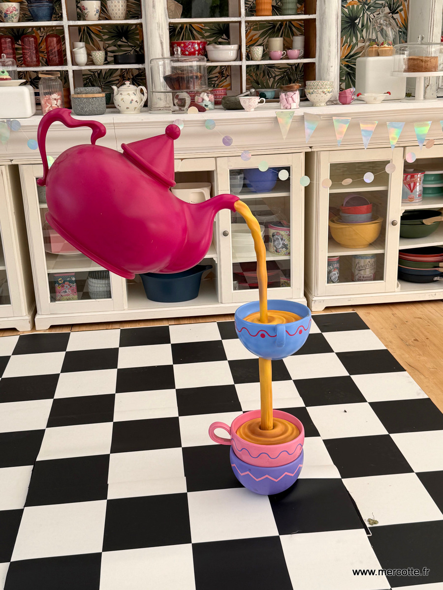 La meringue française vegan : 180g d’eau de pois chiche, 180g de sucre semoule, 180g de sucre glace, colorants rouge, violet bleu, vert, hydro, 200g de chocolat inspiration framboise.